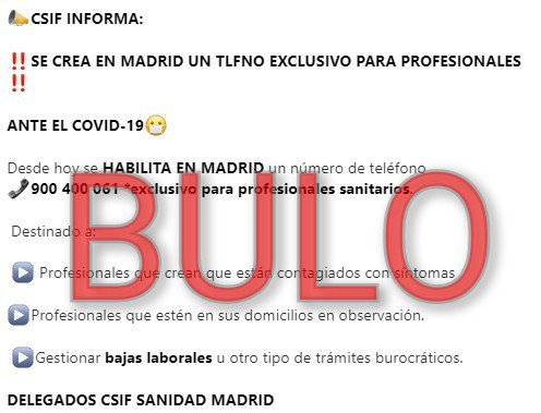 NO. El teléfono 900 400 061 no es para profesionales sanitarios de Madrid, pertenece a la Junta de Andalucía. En la Comunidad de Madrid el único teléfono de información es 900 102 112.